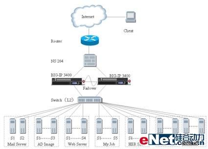 通过F5 BIGIP 3400的部署,系统成功的实现了Mail服务器、WEB 服务器、应用服务器及数据库服务器的负载均衡。