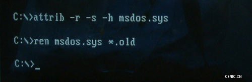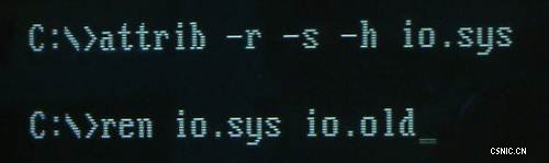具体步骤:重新拷回IO.SYS文件。注意:在拷贝之前先去除文件的稳藏,系统属性。