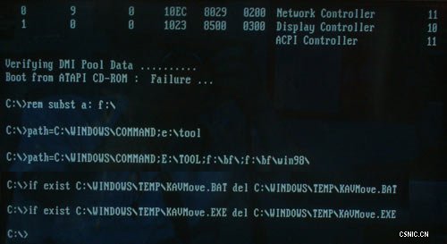 说明提示:当前活动分区中的扇区标志“55AA”丢失时,不影响WIN98系统启动,正常使用。 (八)不能够进入窗口操作模式,开机后直接进入DOS提示符状态。 故障原因:MSDOS.SYS文件丢失。 解决方法:从别的机器拷回MSDOS.SYS文件,注意两台机器的安装路径是否相同,如果不同时,需要使用EDIT.EXE文件编辑MSDOS.SYS文件,将指定的系统路径改为机器的安装路径。 说明提示:不能直接使用软盘启动电脑使用SYS A:C:命令传送系统文件,因为软盘启动系统时不使用MSDOS.SYS文件,其大小只有6个字节,而使用中的MSDOS.SYS文件有接近2K的大小。 故障描述: (1)人为的把MSDOS.SYS文件改名或删除。 (2)重新启动电脑后会有如下的情况发生。 上图所示的提示信息可能多了一点儿,这决定于当前机器中AUTOEXEC.BAT和CONFIG.SYS文件的配置,如果没有这两个文件,系统启动后会直接进入字符界面,没有其他信息出现。 |