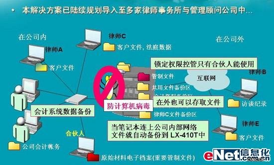 2.各个律师笔记本内的数据都非常重要,大多数的笔记本内并未配置光盘刻录机, 且许多人操作笔记本时都没有备份的习惯, 当笔记本发生问题时, 文件无法救回,律师们只能望笔记本兴叹了,影响服务客户的时效, 也造成业务上的损失。