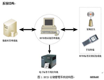 RFID仓储管理系统由业务管理软件、RFID标签发行系统和RFID标签识别采集系统组成,这几个系统互相联系,共同完成物品管理的各个流程。后台数据库管理系统是整个系统的核心,RFID识别采集是实现管理功能的基础和手段。