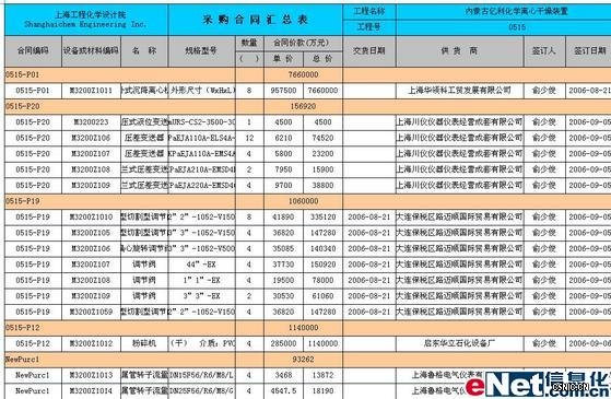 ②从PowerOn中采集的采购合同信息可以形成采购合同汇总表,如下图: