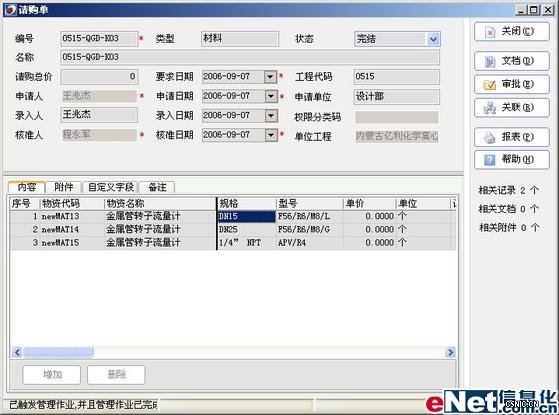 PowerOn更是做到了实时的采购跟踪和采购控制。SCEI的材料或设备的请购单是由设计部门提出的,然后流转到采购施工部门采购经理进行审批。下图是请购单样式: