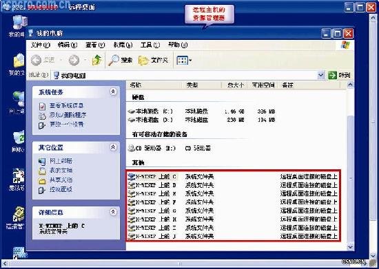 本地文件系统 远程桌面可以使本地的驱动器映射在远程主机的资源管理器中(如图1),这使得本地文件系统可用于终端会话中的远程电脑上,客户机文件系统可以通过远程主机进行访问。