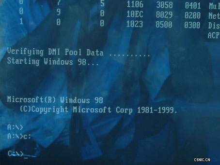 说明提示:当前活动分区中的扇区标志“55AA”丢失时,不影响WIN98系统启动,正常使用。 (八)不能够进入窗口操作模式,开机后直接进入DOS提示符状态。 故障原因:MSDOS.SYS文件丢失。 解决方法:从别的机器拷回MSDOS.SYS文件,注意两台机器的安装路径是否相同,如果不同时,需要使用EDIT.EXE文件编辑MSDOS.SYS文件,将指定的系统路径改为机器的安装路径。 说明提示:不能直接使用软盘启动电脑使用SYS A:C:命令传送系统文件,因为软盘启动系统时不使用MSDOS.SYS文件,其大小只有6个字节,而使用中的MSDOS.SYS文件有接近2K的大小。 故障描述: (1)人为的把MSDOS.SYS文件改名或删除。 (2)重新启动电脑后会有如下的情况发生。 上图所示的提示信息可能多了一点儿,这决定于当前机器中AUTOEXEC.BAT和CONFIG.SYS文件的配置,如果没有这两个文件,系统启动后会直接进入字符界面,没有其他信息出现。 |