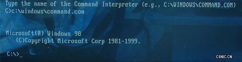 (3)根据提示输入正确的COMMAND.COM文件存在的路径时,就会出现正常的系统提示符。