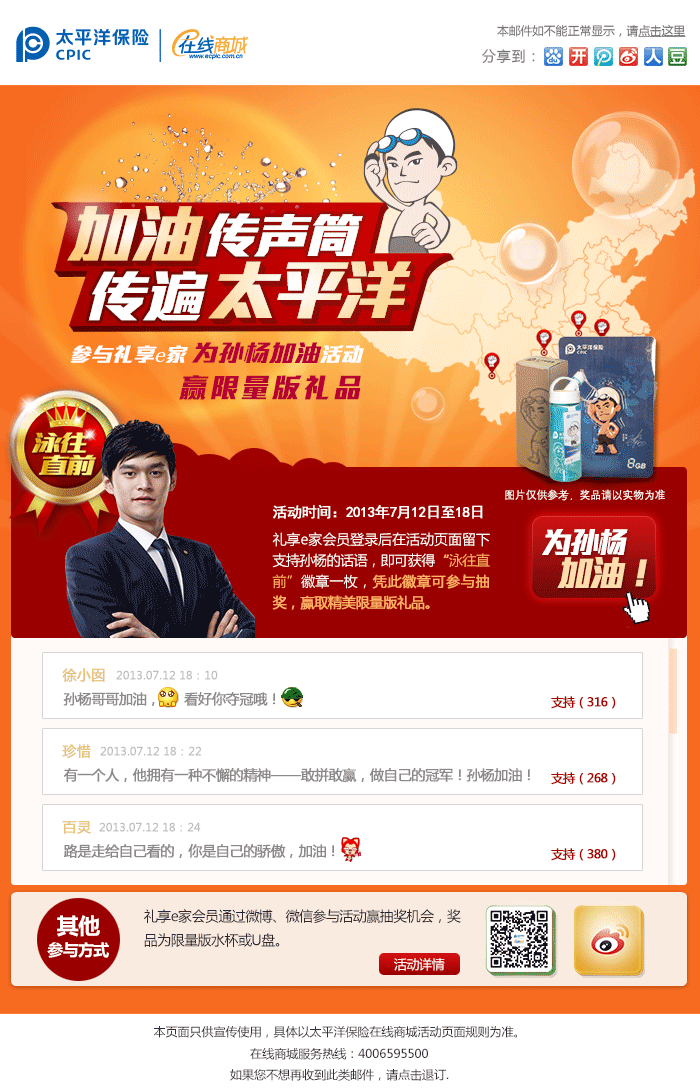 及时直播分享来自社交等渠道的互动信息,不但为品牌活动的多渠道声音扩散呐喊助力,最重要的是品牌与用户的互动性增强,渠道与渠道间联系更加紧密,邮件页 面表现更为生动活泼,用户体验也更好,进一步试想,当用户在邮件中正好看到了自己的留言,一定会大叫,“哇,是我耶”。