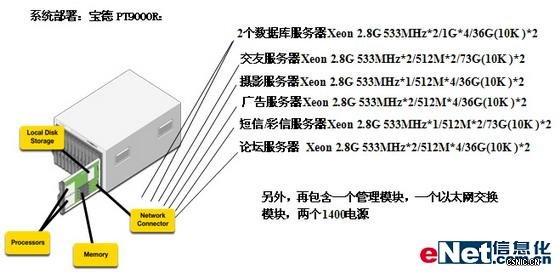在重庆之窗新业务扩容应用:彩信、广告、交友等业务平台建设中,考虑到以后将面临的大数据量、大并发访问量的特点,本系统没有采用传统机架式服务器技术,而是采用了Intel IA刀片服务器技术,不但使系统结构大大简化,而且更大大提高了服务器的密度,为将来网通新业务应用的迅速发展提供了十分良好的扩展空间和扩展成本。同时,为系统的维护及管理带来超值的回报。