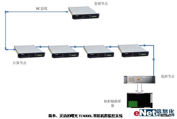 鉴于山东科技大学资源与环境工程学院对系统管理性的较高要求,方案采用了曙光机群管理系统解决方案,其中包括曙光SKVMOver IP解决方案、机群监控系统解决方案以及曙光DCOS机群操作系统解决方案。整个方案为用户提供了从本地到远程(跨Internet网)的完整的解决方案,曙光的这些解决方案都是业界具有绝对领先地位的。