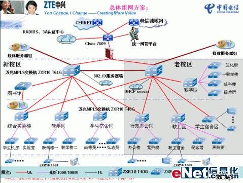 随着教育部“新时期校园网信息化平台”政策的制定,全国各大高校纷纷进行各自校园网信息平台的建设及完善,中兴通讯按照教育部下发新时期校园网信息平台建设指导建议并紧密结合湛江师范学院校园网现状,制定了如下建网指导思路: