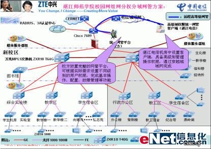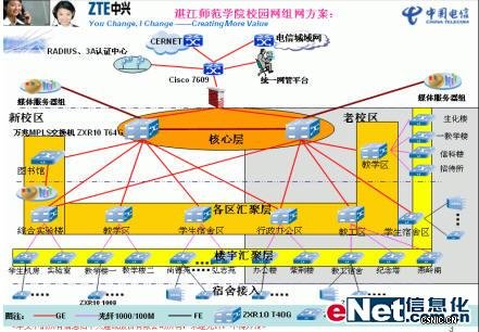 中兴通讯凭借先进的电信级数据设备和丰富的校园网建设经验,与湛江师范学院携手,共同建设全国最大“新时期校园网”。通过细致的需求分析和富有特色的策略,中兴通讯将湛江师范学院校园网建成网络清晰、业务丰富、安全可靠、计费灵活的精品校园网,为推动中国教育信息化发展助一臂之力。