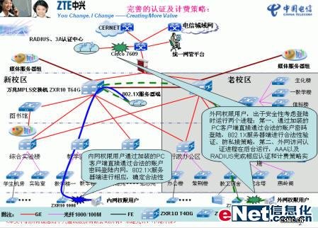 针对本次校园网工程,涉及计费和款项记账、划账等特殊性要求,中兴通讯进行如下规划和建设: