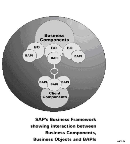 SAP业务构件是专用的,被封装的业务功能模块及其调用接口。这些构件拥有它们自己的开发,部署和维护的周期,并可运行于其专用的数据库系统之上。