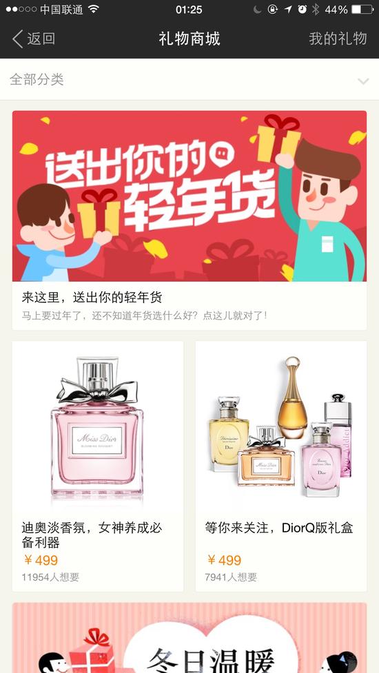 首批商城礼品主打新奇酷玩的精品路线,主要包括鲜花、家居、美妆、数码配件、首饰五大类别,单品价格在100元—1000元之间不等。该版本同时还预埋了“新年红包”功能,将于2月中旬面向用户推出,届时陌陌用户可以在群组、好友之间发送新年红包。