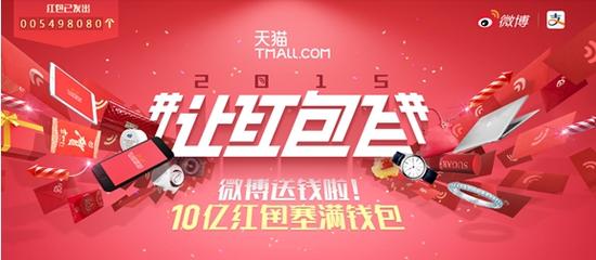 联合发起的2015#让红包飞#启动,春节红包大战序幕拉开。今年微博首次推出现金红包,网友不但可以在微博红包里直接抽到现金,还可以给自己的偶像充红包,并获得和偶像发联名红包的机会。2015#让红包飞#活动上线仅8小时已经送出549万个红包,有数十位明星大咖的红包被网友抢光。活动期间预计将送出价值超过10亿元的红包。