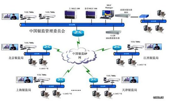 之前,高速IP骨干网已经为银监会的办公自动化及其他业务系统的应用提供了较为良好的网络基础平台。但为了彻底实现“政务办公及行业管理信息服务的电子化、网络化”的行政管理体制要求,更充分利用现有的网络资源,提高自动化管理水平,银监会联手美国POLYCOM公司,启动了视频会议工程。该工程采用H.323/SIP协议,构建于银监会全国骨干IP网络之上,可实现企业内的实时交谈、会议召开及信息共享等。