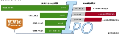 此前2月1日早间,窝窝向美国证券交易委员会(SEC)递交的更新后的IPO招股书文件,其计划通过本次交易最高募集6500万美元。窝窝财报显示,公司近年来持续亏损,2011年、2012年、2013年及2014年前9个月,净亏损分别达到9038.9万美元、3901万美元、3217.2万美元及3244.7万美元。若不扭转上述趋势,按照2013年全年的亏损额3217万美元来计算,业内预计IPO募集资金只够窝窝烧上两年。本版采写/新京报记者 刘夏