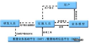 提供“敏捷定制、快速构建、因变而变”的项目实施和服务模式,使城市规划信息化的实施和开发工作得以完全分开:研发人员的工作集中在可定制基础业务平台的研制上,向实施人员提供有力的定制工具。实施人员获取用户需求,在反馈给研发人员的同时,利用可视化建模工具迅速生成能够满足用户需求的系统模型,供用户评估和试运行。完整的项目实施和服务模式如下图所示;