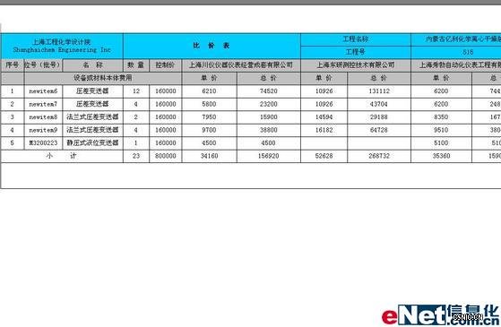 ①从PowerOn中采集的采购招标信息可以形成供货商比价表,如下图: