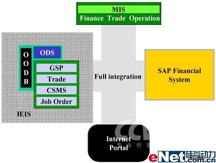 此次中远集运建立的IRIS-2系统遍及全球1000多个代理分支机构,影响力辐射至欧、美、亚、非、澳五大洲各经济热点地区的交通枢纽、国际空港和主要口岸。在数据中心建设中,中远集运选用了20多台惠普UNIX服务器和30多台NT Server作为其硬件平台,系统使用之后,每天产生大量数据,并以较高的速度增长,随着应用的不断深入,预计在3年内,数据量将达到9TB。IRIS-2系统对数据存储要求较高,实时性强,系统的主要业务都是实时性作业,要求相关部门之间的数据进行实时数据传递。信息系统的数据构架如下图所示: