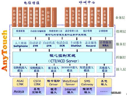 AnyTouch是一个融合呼叫中心和电信增值业务的集成开发工具。能够构建各种呼叫中心、企业热线、客户服务系统;基于AnyTouch平台还可以开发各种电信增值的业务,如:座席外包、固话秘书台、彩话、点歌、信息台等等。