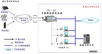 北京佳讯飞鸿公司车站电话问询系统是一套以热线电话为主的旅客咨询服务系统,将有原有数个问询号码都统一到唯一的服务号码。利用电信电话和计算机控制处理技术(CTI)的紧密结合,通过电话按键,采用自动语音导航技术(IVR)、文本转语音技术(TTS),呼叫自动分配技术(ACD)实现咨询服务的人工受理以及24小时自动受理的多重现代科技技术结合。