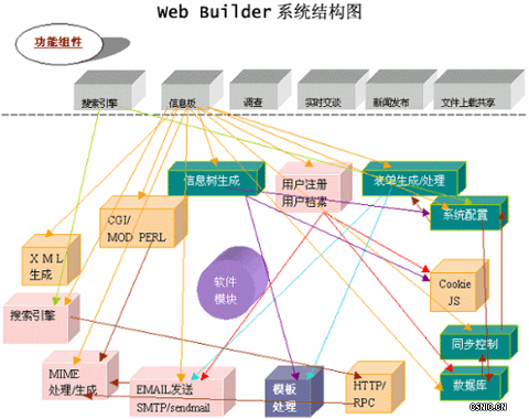 WebBuilder几乎综合了一个互联网站所需的全部功能并有其独特的功能。 它具有新闻系统、搜索引擎、检索系统、无限制多功能调查、网页生成与自动更新、论坛、私人讨论、聊天或即时交谈、广告管理、上载链接文件、直接上载文件、查看在线用户、全局统计、处理任意表单、日程表、用户管理、Email发布、发送电子邮件通知、上载图象缩略图显示等等,并且这些功能有机地形成一个开放的系统。